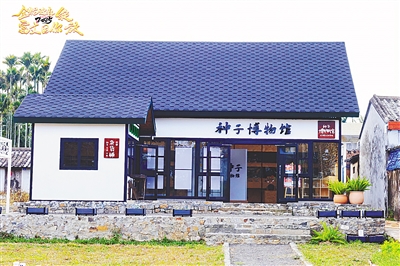 走进富文镇九所村委会九所村,在一片草坪的尽头就能看见古朴简约的种子博物馆。该馆外墙整体为白色,有灰黑色的门窗边框,巧妙融入村庄环境中。