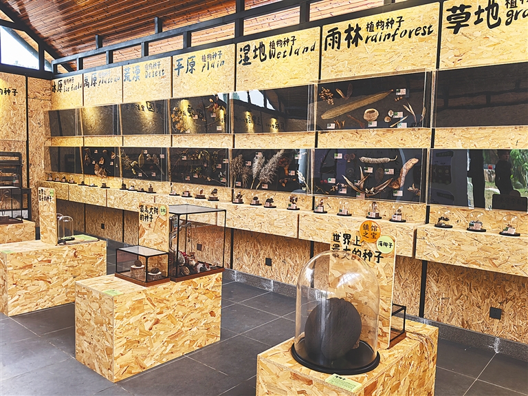 “我们精选了六种具有代表性的种子在这个区域进行展示。”王珊珊说,除了最大、最重的种子海椰子外,还有最小、最轻的斑叶兰种子、最高树木云杉的种子、“最有价值”的超级稻种子、“最具附加值”的菩提种子、有毒植物海芋的种子。