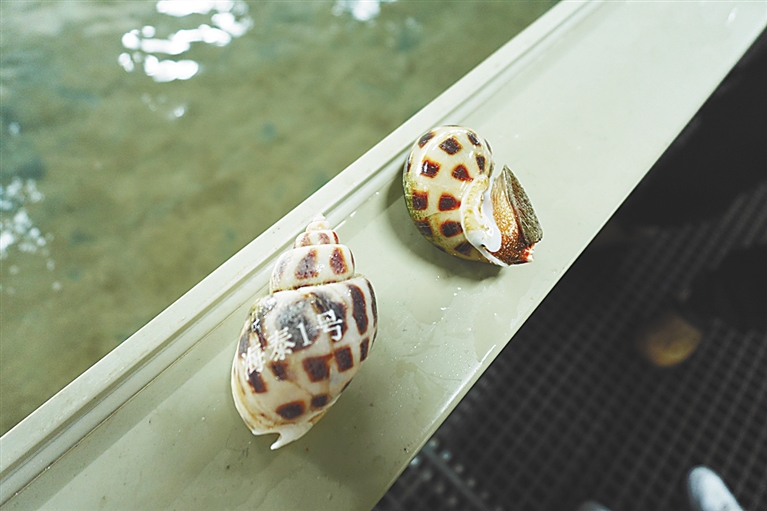 “我们用激光给每一粒东风螺编码,这是它们的‘身份证’,方便我们观察研究。”在刘盛泰看来,每一粒螺都有独特的遗传育种意义。“我们基于全基因组选育技术,开展生长、饵料、抗病等性状全基因组选育及杂交育种工作,最终要培育出具有吃得少长得快、抗病性强、养殖周期短等优点的方斑东风螺良种。”刘盛泰说。