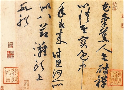 黄庭坚的诗体,被称为“山谷体”,具有奇峭倔强的特点。他的书法也有类似的特点,自成一家。他与苏轼、米芾、蔡襄齐名,四人合称“宋四家”。黄庭坚早年研习书法,以颜真卿为师,用笔厚重,同时借鉴苏轼的书写风格,晚年从张旭、怀素书法中得到启发,草书线条变得更加奔放圆劲,书法艺术进一步突破。
