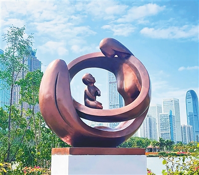 此次展出的雕塑作品,每一件都独具个性,各有千秋。关于海南,关于海南自贸港,创作者通过充满烟火味的家常的温暖来展示,比如《自贸港·新生》《幸福一家——自拍》等。