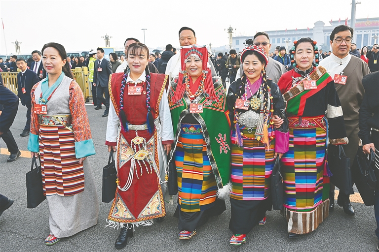 3月5日,十四届全国人大三次会议在北京人民大会堂开幕。①②这是全国人大代表走向会场。