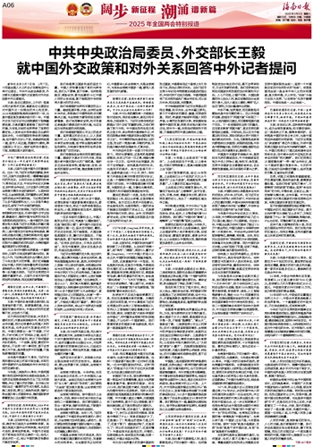 中共中央政治局委员、外交部长王毅 就中国外交政策和对外关系回答中外记者提问