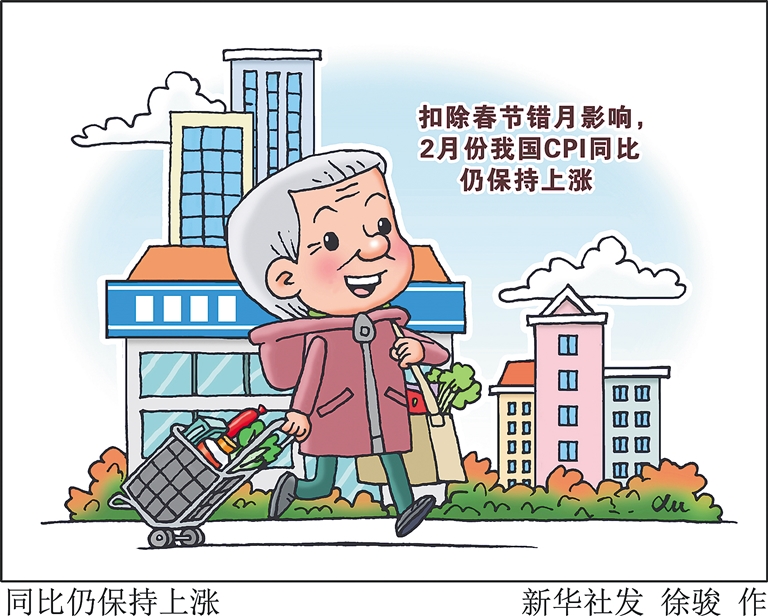 “扣除春节错月影响,2月份CPI同比上涨0.1%,当前物价温和回升的态势没有改变。”董莉娟说。