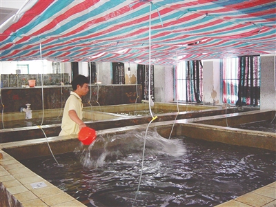 将育珠母贝放入海底养殖,或依托联桩、浮球等吊养在海水中。