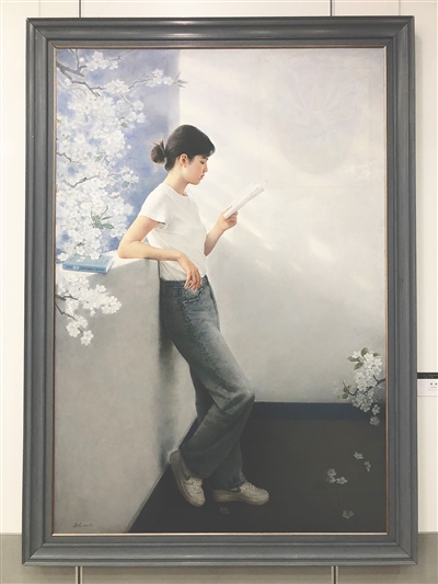随着油彩点染,眼底心上的春光便明媚起来。王锐的另一幅油画作品《春天的花地毯》,描绘了一片盛开的野花田野。在他的“风景”里,野花没有名贵花朵的芬芳艳丽,却透着自然孕育的天然娇容和骨子里的向生力,与远处的庭院相映成趣,整个画面充满了和谐与温馨。让人蓦然发现,平日司空见惯的风景,其实有着美丽动人的面目。