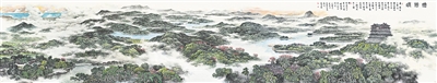 在作品《南国风骨》中,马飞采用勾而复皴、连皴带染、皴染交叠、边勾边皴等方法,体现木棉的风骨与气势。他横向取势,利用虬龙般的横枝,结成交错缠绕的网络,花朵厚瓣有棱角,色彩浓艳,给人以舒展大气感。在近15米长的巨幅国画——《儋阳颂》中,由儋阳楼向下望去,风光壮丽,气象万千,木棉的火红与山水的青绿形成了强烈的对比和视觉冲击,一派生机盎然。
