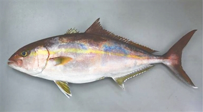 | 高体鰤 学名:高体鰤 俗名:杜氏鰤、红甘鰤、红魽 体侧有一条明显的褐色斜带,最大体长可达1.8米,游泳速度快,属洄游性鱼类。 |