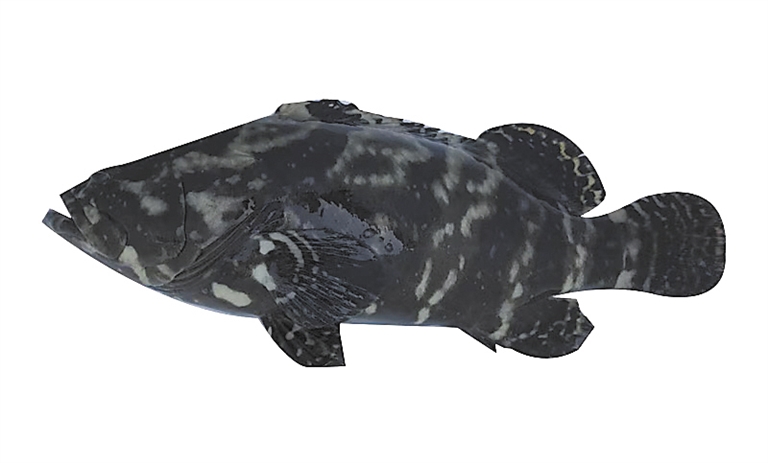 | 石斑鱼 学名:珍珠龙胆石斑鱼 俗名:珍珠斑、龙虎斑 体型庞大,可达2米,体表有深色斑点,栖息于珊瑚礁或岩礁区。 (陈彬辑 制图/孙发强) |