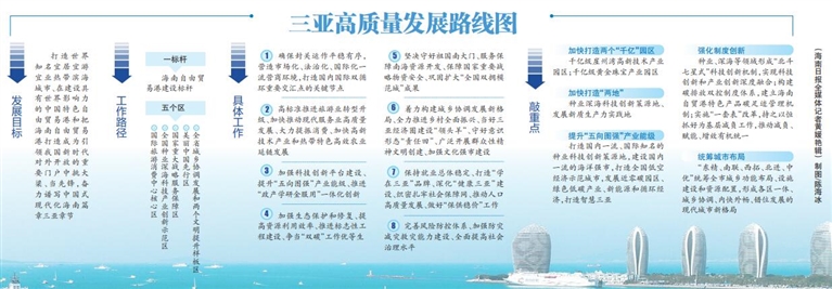 围绕人民城市建设的发展逻辑,三亚自觉站在全国、全省大局中审视全局工作,明确了奋进新征程的路线图——聚力打造“一标杆、五个区”。