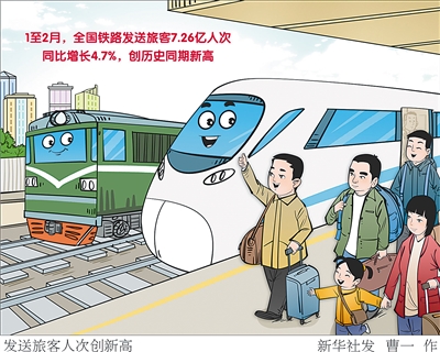 据新华社北京3月10日电(记者樊曦)记者10日从中国国家铁路集团有限公司获悉,1至2月,全国铁路发送旅客7.26亿人次、同比增长4.7%,创历史同期新高,运输安全平稳有序。