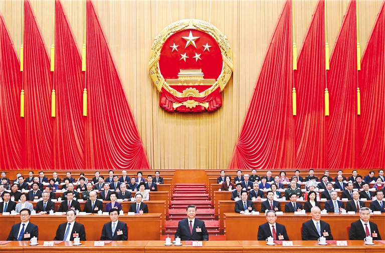 习近平、李强、王沪宁、蔡奇、丁薛祥、李希、韩正和大会主席团成员在主席台就座。
