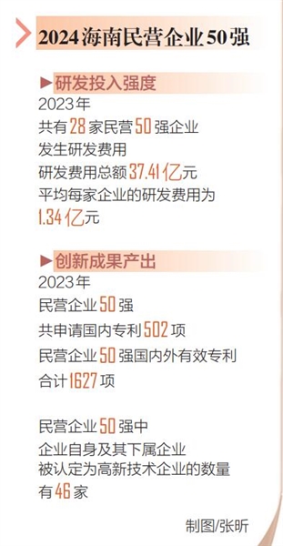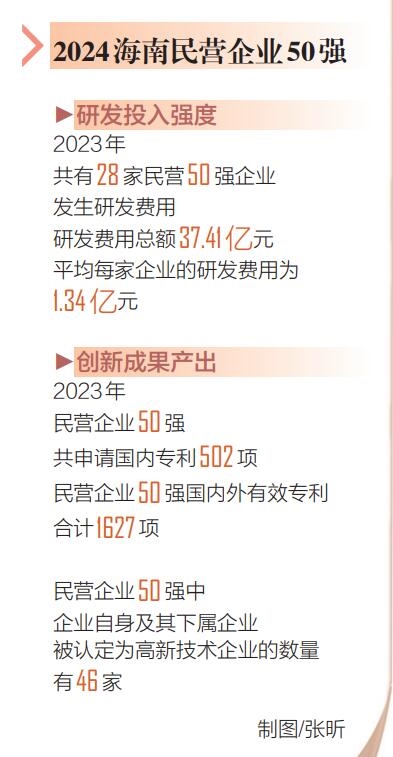 梳理“2024海南民营企业50强”榜单,会发现一个颇有意思的现象:50强企业自身及其下属企业被认定为高新技术企业的高达46家。