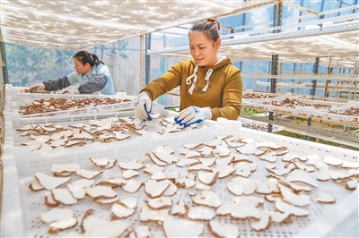 3月22日,白沙黎族自治县青松乡南药分拣中心,工人对虎乳灵芝进行晾晒。随着青松乡林下种植的虎乳灵芝迎来批量上市,分拣中心也进入了生产加工旺季。