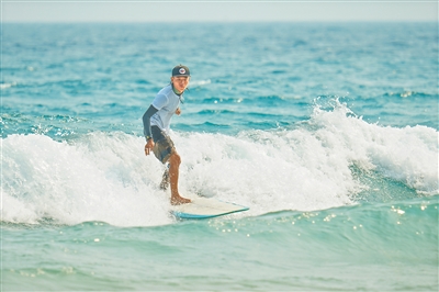 3月28日,2025年中国(海南)冲浪公开赛在万宁日月湾拉开帷幕。此次赛事由国家体育总局水上运动管理中心、海南省旅游和文化广电体育厅、万宁市政府联合主办,将持续至4月2日。赛事吸引了39支队伍300余名选手参与。图为选手在比赛中。