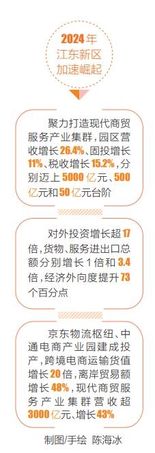 如今,江东新区现代服务业产业集群已然聚链成势,园区正围绕产业链打造“服务链”,增强数字经济、金融、专业服务支撑,提升园区发展能级,加快构建具有江东特色和优势的现代服务业产业体系。