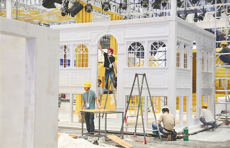 4月7日,在海南国际会展中心,第五届中国国际消费品博览会主会场场馆搭建工作有序开展。截至目前,各展馆内总体搭建进度为30%,预计全部搭建工作将在4月9日前完成。4月10日至4月11日,参展商将进行布展及展品陈列。海南日报全媒体记者 邱肖帅 摄