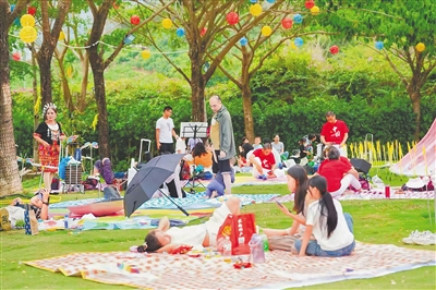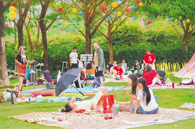 去乡野田间拥抱自然,也成了游客清明假期“慢旅游”的好去处。在三亚大茅远洋生态村,依山而建的梯田营地散落着靛蓝帐篷。人们在此把春天“搬”进帐篷里,与自然相拥,享受着露营的乐趣,重拾“偷得浮生半日闲”的松弛感。“这里可以逃离城市的喧闹,去除‘班味’,还可以让小朋友亲近自然。”北京游客王萌说。