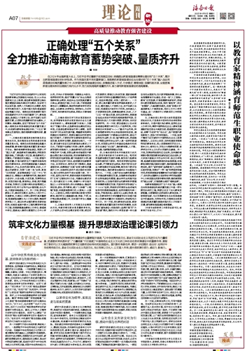 正确处理“五个关系” 全力推动海南教育蓄势突破、量质齐升