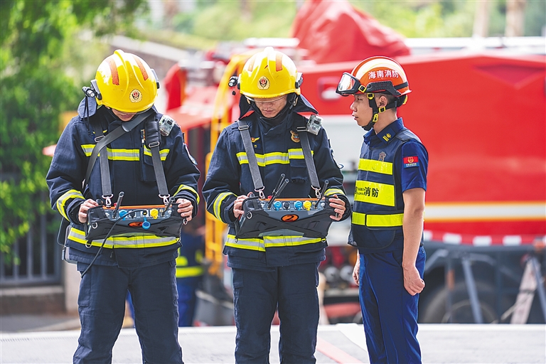 4月10日,海口市消防救援支队在海南国际会展中心开展消防安全检查及演练,为即将开幕的第五届消博会筑牢安全防线。