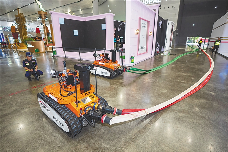 ②防爆消防灭火侦查机器人进入馆内查看情况。海南日报全媒体记者 李天平 摄