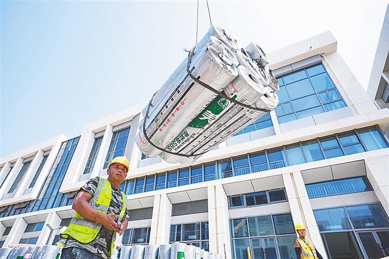 近日,在陵水文罗产业园,机器轰鸣,车辆穿梭,一派忙碌景象。