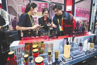 在消博会“妆”扮美丽