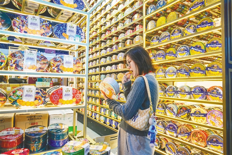 消博会4号馆全球特色消费展区,观展人员在购买马来西亚商品。海南日报全媒体记者 张茂 摄