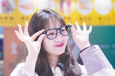 消博会2号馆买全球卖全球展区,观展人员试戴AR智能眼镜。海南日报全媒体记者 王程龙 摄