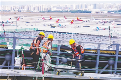今年以来,三亚凤凰国际机场多项数据创下历史新高。当前,凤凰机场三期改扩建项目正加速推进,工人们加班加点,交叉推进航站楼屋面、幕墙工程、二次结构以及机电工程等工序施工。作为海南自贸港封关运作的重要项目之一,该项目核心工程T3航站楼已实现混凝土结构以及钢结构封顶,力争2025年底完工。