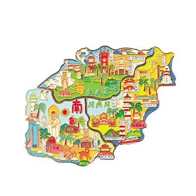 海南省博物馆结合大力神图腾、东坡文化等,推出了多款冰箱贴。其中,设计人员以曾经的贡品——黎族五龙出海图龙被为灵感,设计出了一款精美的五龙出海冰箱贴;