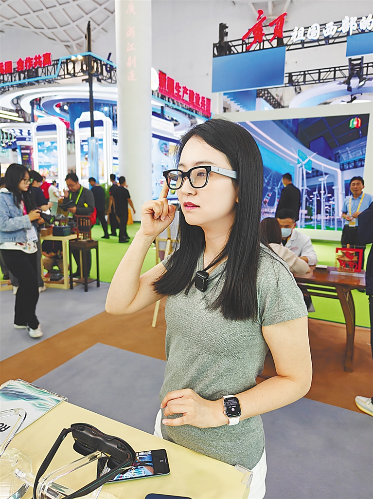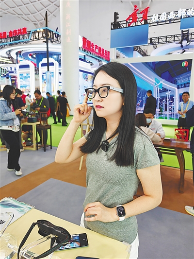 本报海口4月14日讯 (海南日报全媒体记者王培琳)如果你社恐,害怕当众发言,那么第五届中国国际消费品博览会上首发的这款眼镜将会是你的福音。4月14日,消博会6号馆浙江精品展位,一副眼镜引起了不少参展观众的注意。“脱稿神器”“社恐福音”等标签,让大家跃跃欲试,都想一探究竟。