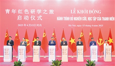 活动后,习近平和苏林、梁强共同启动“红色研学之旅”项目。习近平同苏林、范明政共同见证中越铁路合作机制启动仪式。