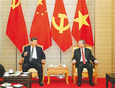 习近平指出,这次访问时间虽短,但活动丰富、成果丰硕。双方重申共同壮大世界社会主义事业的政治意愿,都期待朝着“六个更”总体目标全面推进两国战略合作,都表示抵御外部风险挑战,维护地区和平稳定和国际公平正义。我对中越关系发展前景充满信心。双方要全面落实这次访问成果,持续推进中越命运共同体建设。