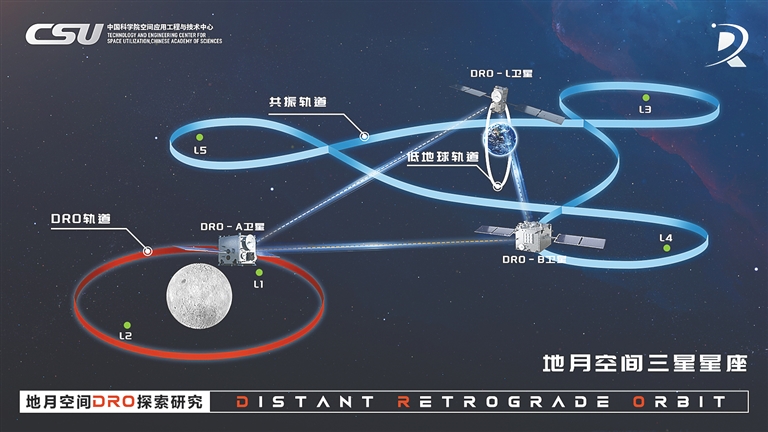 构建地月空间三星星座,旨在深入探索地月空间DRO规律特性、试验验证相关技术,为开发利用地月空间“天然良港”提供科技支撑。