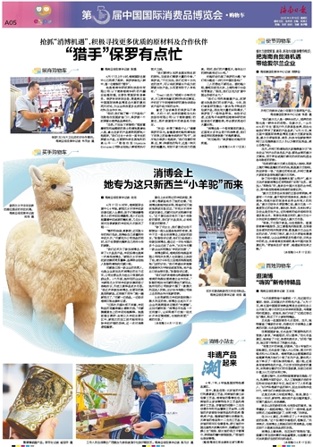 在INJOI展区,刘菲购买了2个羊驼毛制成的玩偶。“这个玩偶的手感很好,很解压。”刘菲表示,在消博会上既能买到日常消费品,也能买到不少提高生活品质的东西。
