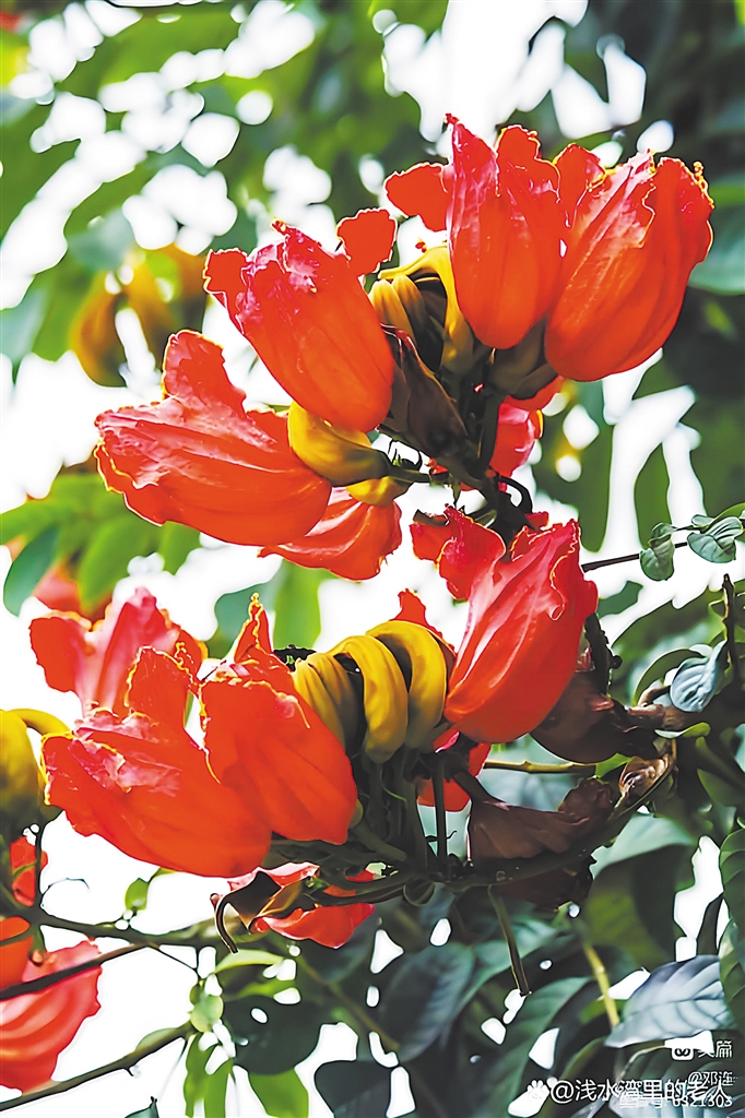 火焰木与木棉花、凤凰木并称“热带三把火”,一旦这三种鲜花次第开放,那几乎已可以撑起一个灿烂的春天。