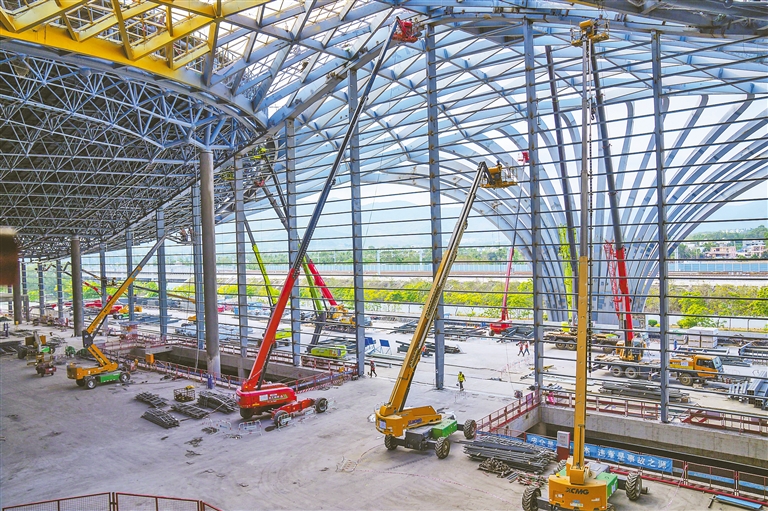 近日,三亚凤凰国际机场三期改扩建项目施工现场,工人们在焊接钢结构。据悉,该项目于去年5月全面开工建设,正冲刺今年底完工。项目建成后,将进一步提升三亚凤凰国际机场综合运行保障能力和服务水平,满足年旅客吞吐量3000万人次的保障需求。