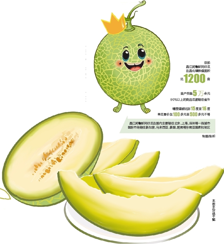 近年来,在昌化镇实现本土种植后,果鲜生公司就推动阿鲁斯网纹瓜走上商业化之路,打造高端蜜瓜产业品牌。目前,该品种在昌化镇种植面积已达1200亩,亩产效益5万余元,90%以上的商品瓜销往省外。