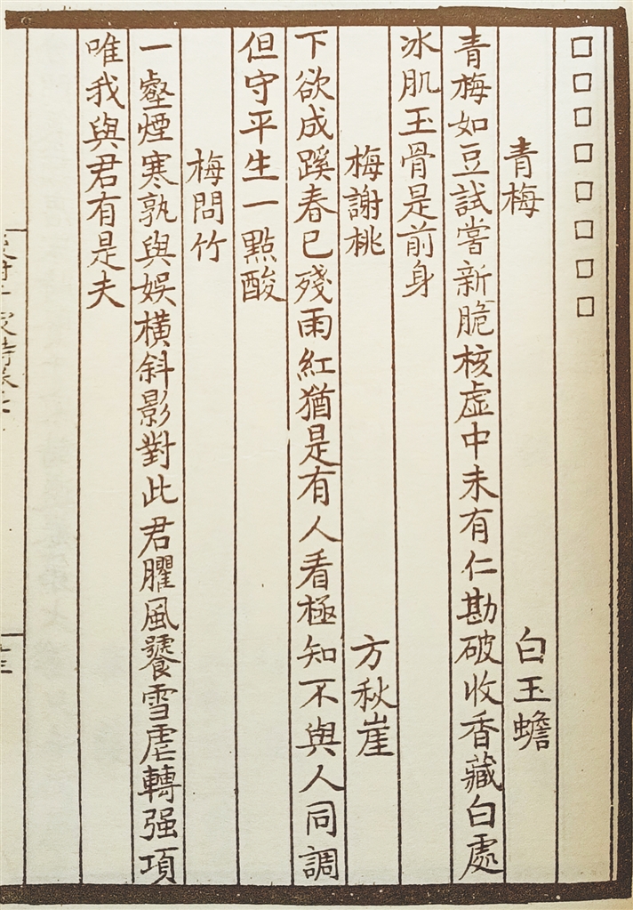 《分门纂类唐宋时贤千家诗选》简称《千家诗(宋本)》,是中国古代重要的蒙学教材,主要用于儿童识字和诗歌启蒙教育。编者是南宋诗人刘克庄,成书于南宋末年。这是一部诗歌类选集,收录了大量唐宋诗人的作品,少数为南北朝和五代诗人作品。全书共二十二卷,分为十四门,收录了360多位作者的1200多首律诗和绝句,人均3.33首诗。