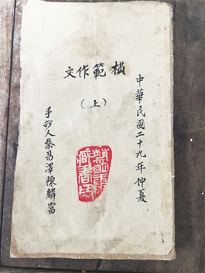 随着新的教育制度确立和新式教科书出现,传统蒙学读本逐渐被取代。出生于1936年的海南作家蔡明康先生告诉笔者,他老家在海南乐东的罗马村,日军入侵时,日寇强占村小学,学校被迫迁到村里的关公庙,他小时候因为贫穷上不了学,时常在关公庙的窗边旁听。他记得那时的教材有《国语》和《常识》两种,《国语》第一页有“来来来,来上学;去去去,去游戏;看看看,看图书,图书真好看”。蔡明康的父亲蔡昌泽十分注重孩子的教育,为了让孩子学到更多知识,1940年他借来学校的延伸读本《模范作文》用小楷抄录一份装订成册,书中有《一年来回顾》《迎春》《送春》《我的将来》《立志》等文章。蔡明康自幼坚持走自学成才之路,博览群书,后来进行文学创作,著有诗歌、散文等多种书籍,于1999年获得海南省作协文学开拓者十佳荣誉证书,其家庭2014年被授予全国“书香之家”称号。