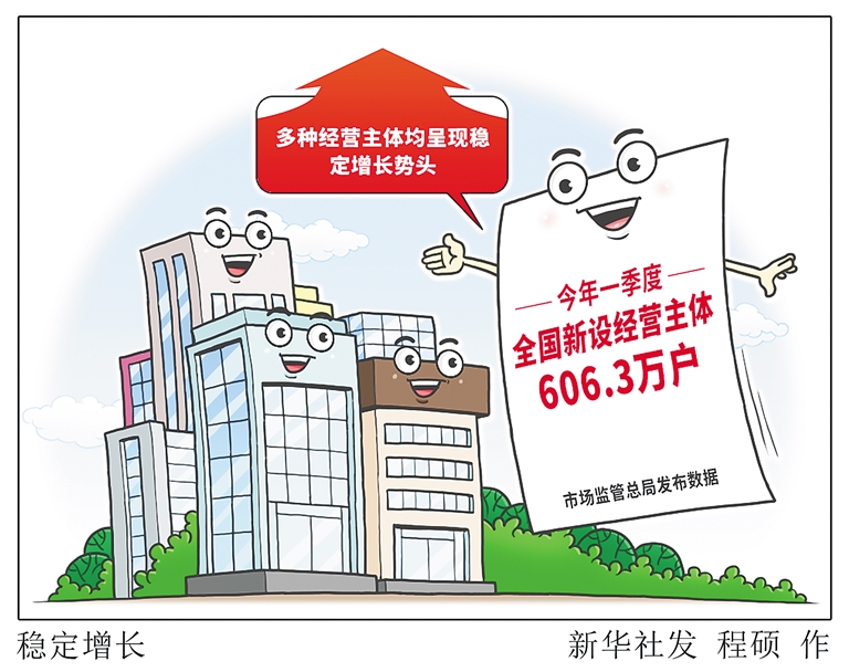 据新华社北京4月21日电(记者赵文君)市场监管总局21日发布数据,今年一季度,全国新设经营主体606.3万户。其中,新设企业210万户,新设个体工商户394.9万户,新设农民专业合作社1.4万户,多种经营主体均呈现稳定增长势头。