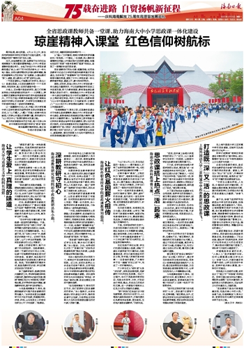 “思政教育不是往行李箱里塞东西,而是点亮心中的火把。”徐春飞说,在海南解放75周年之际,更要用党的光辉历史照亮青年学子成长之路。