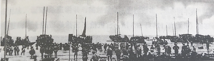 同年3月5日,在广东省湛江市徐闻县灯楼角,第40军118师一个加强营的799人集结在此。当晚7点,渡海先锋营799名勇士登上13艘木帆船向白马井地区前进。
