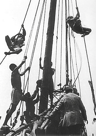渡海兵团在营房、海边、树上、门上制作了很多秋千。官兵们通过打秋千练习防晕船。为了避开白天国民党的飞机,他们晚上下海实操,每天晚上6点左右下海,天亮了再上岸。