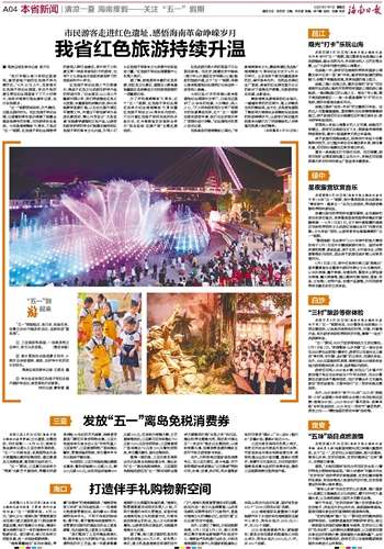 本报营根4月30日电(海南日报全媒体记者刘宁玥)今年“五一”假期,琼中黎族苗族自治县推出“清凉琼中・趣享五一”系列文旅活动,带领游客解锁热带雨林新玩法。
