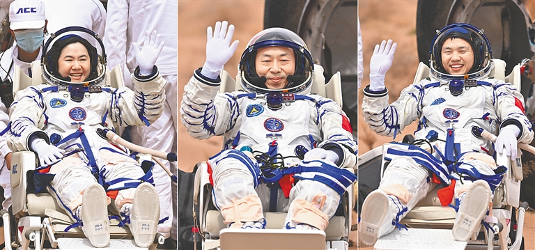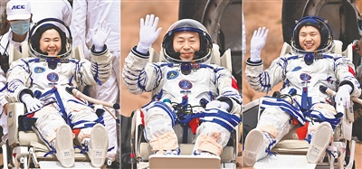 图为神舟十九号航天员王浩泽、蔡旭哲、宋令东(从左至右)安全顺利出舱(拼版照片)。