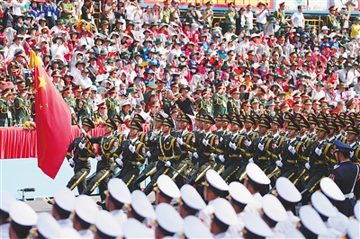 中国方队入场时,全场越南观众自发起立热烈鼓掌欢迎。越南观众范氏惠在阅兵式后告诉新华社记者:“中国军人们军容严整,动作整齐,力量感十足,我为越中两国‘同志加兄弟’的情谊感到自豪。”