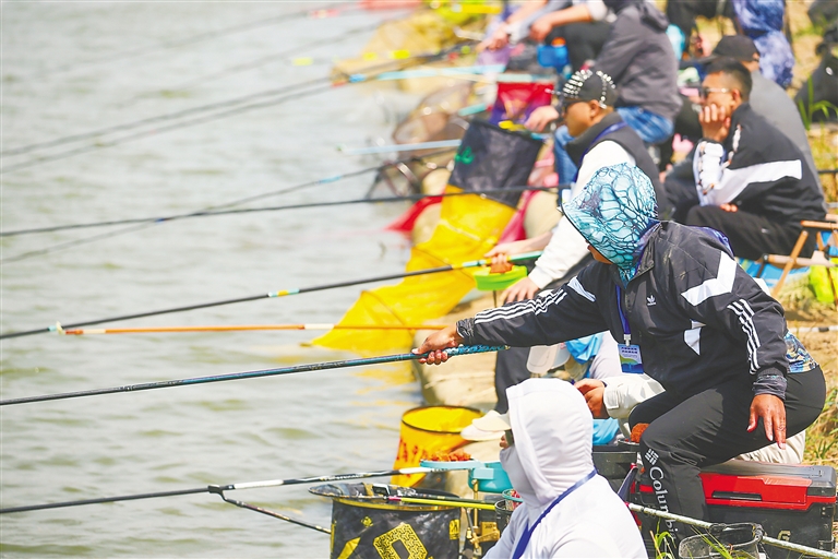5月3日,钓鱼爱好者在江苏省海安市首届滨海新区钓鱼大赛参加比赛。新华社发