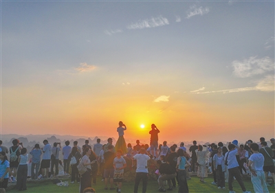 5月2日,游人在广西桂林市阳朔县葡萄镇杨梅岭村夕阳山上观光。 新华社发